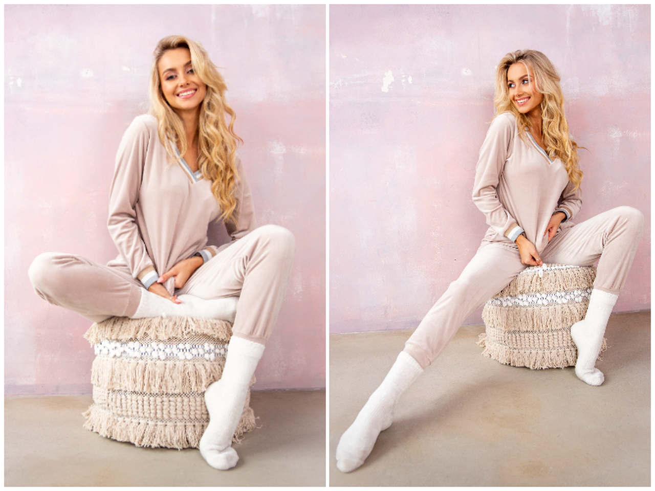 Kolekcja welurów w hurtowni odzieży Factoryprice.eu – różowy welurowy komplet